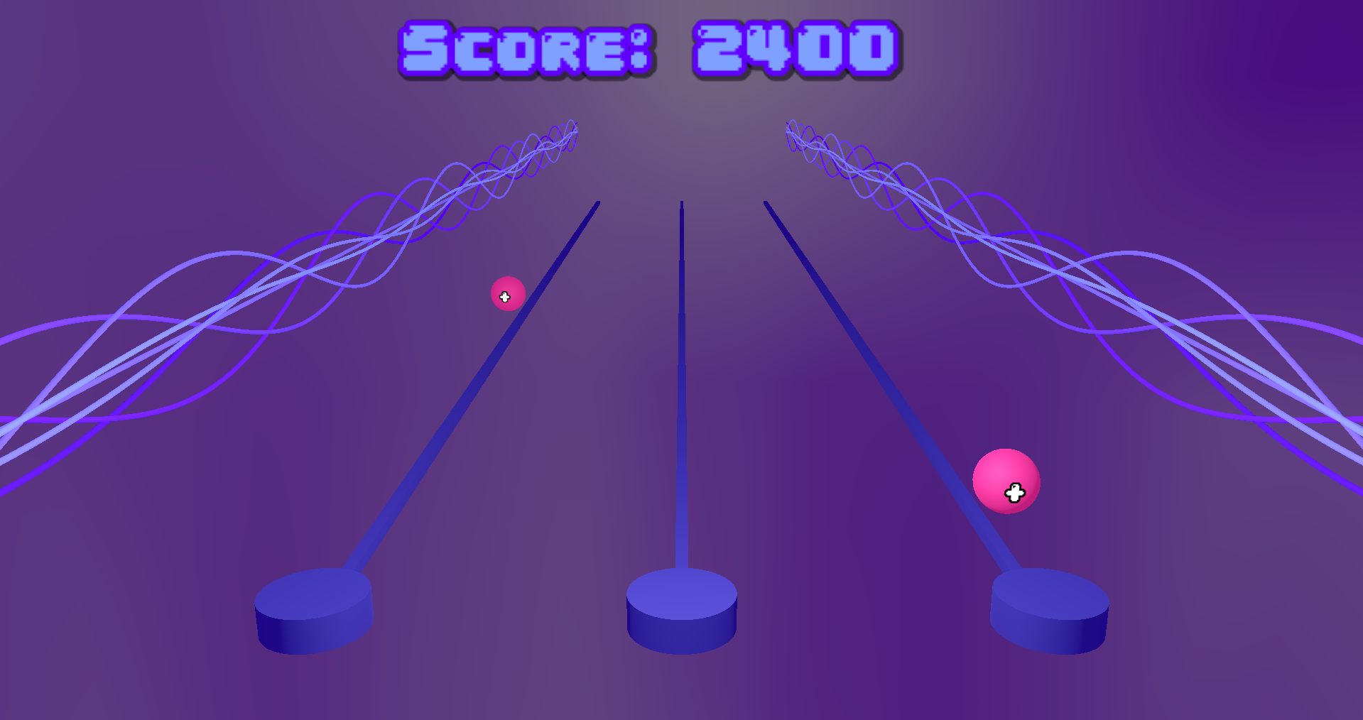 Descripción del juego: Qubeats es un juego de ritmo, en el que hay que colapsar qubits en superposición a estado 0. Para ellos, los qubits viajarán por tres canales cuánticos, hasta llegar a un operador, con el cual podremos aplicar una puerta X a los qubits que vengan en estado 1, y una puerta H a los qubits que vengan en estado +.